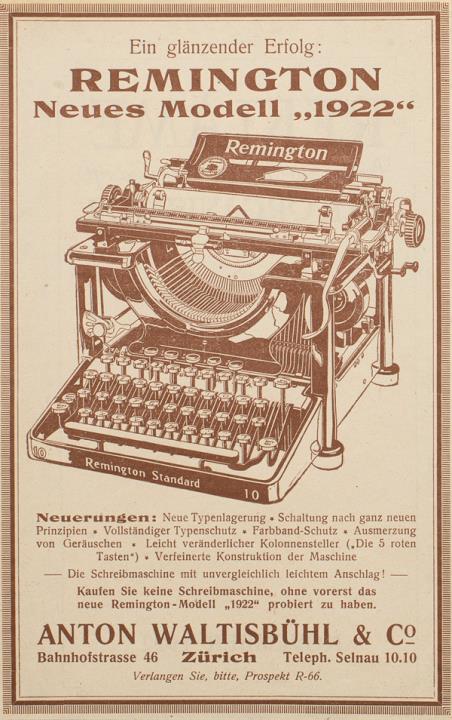 Werbeanzeige für Schreibmaschine Remington 10 monochrom