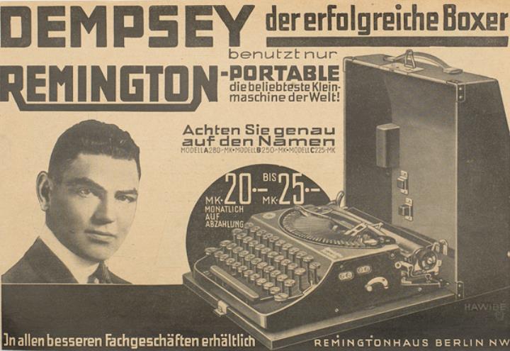 Dempsey der erfolgreiche Boxer benutzt nur Remington-Portable