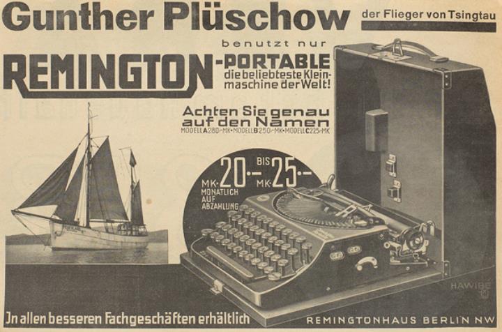 Gunther Plüschow [...] benutzt nur Remington-Portable