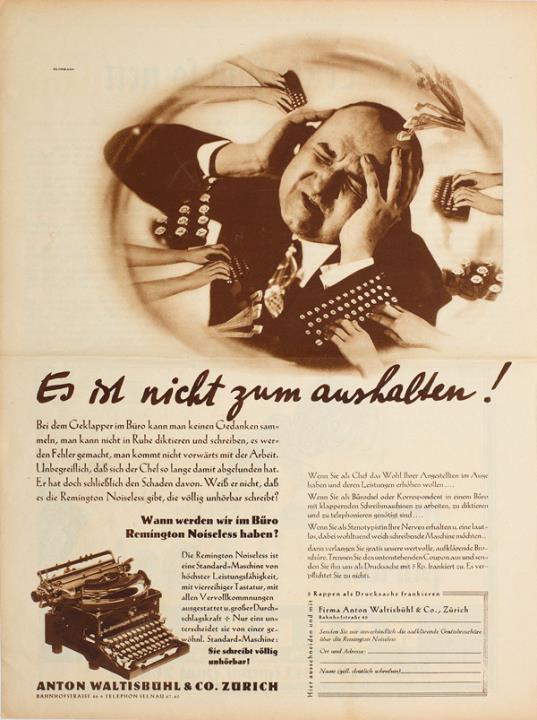 Werbeanzeige für Schreibmaschine Remington Noiseless monochrom