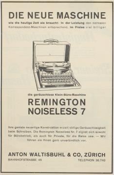 Werbeanzeige für Schreibmaschine Remington Noiseless 7 monochrom