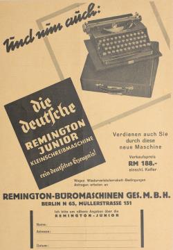 Werbeanzeige für tragbare Schreibmaschine Remington Junior monochrom