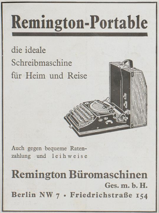 Werbeanzeige für tragbare Schreibmaschine Remington monochrom