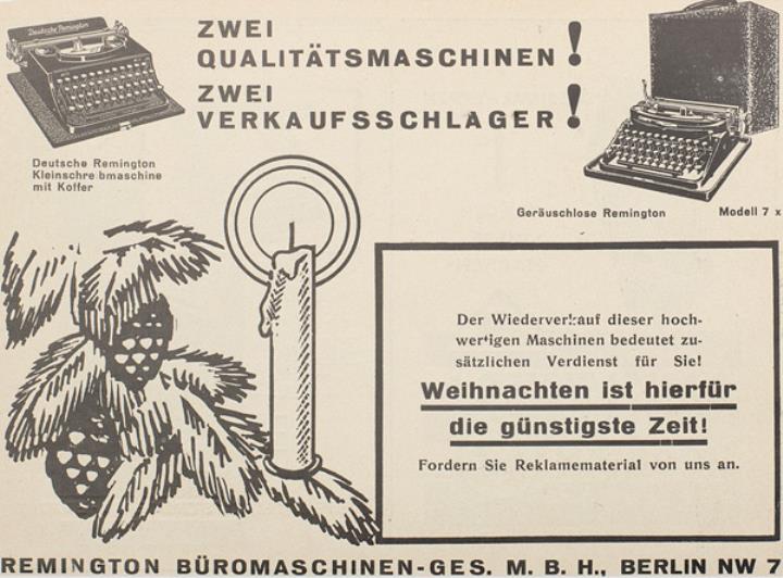 Werbeanzeige für tragbare Schreibmaschinen Remington monochrom