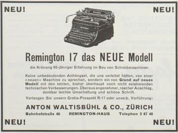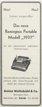 Werbeanzeige für tragbare Schreibmaschine Remington monochrom