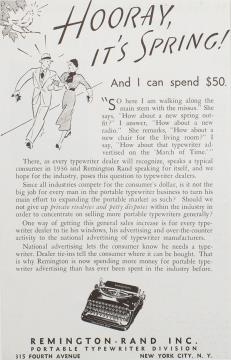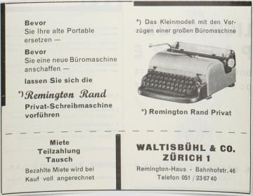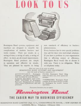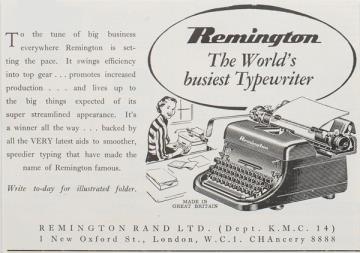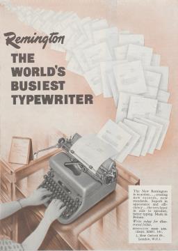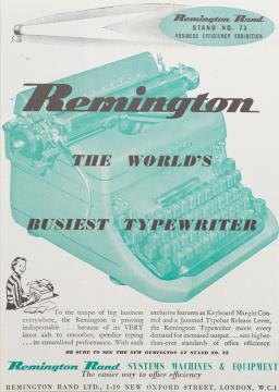 Werbeanzeige für Schreibmaschinen und Büroausstattung Remington Rand polychrom