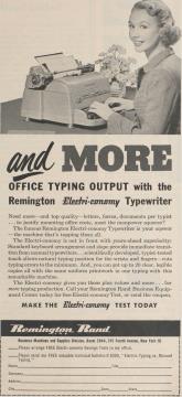 Werbeanzeige für Schreibmaschine Remington Electri-conomy monochrom