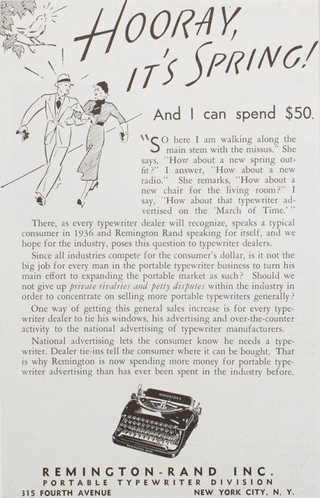 Werbeanzeige für tragbare Schreibmaschine Remington monochrom