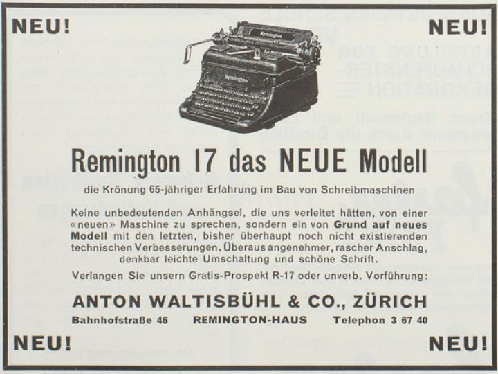 Werbeanzeige für Schreibmaschine Remington 17 monochrom