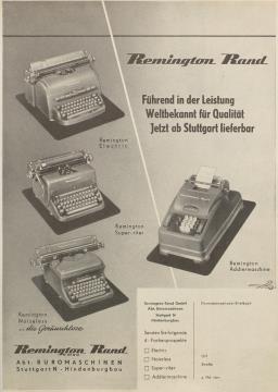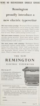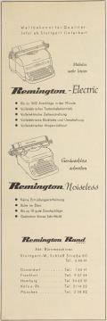 Werbeanzeige für Schreibmaschine und Büroausstattung Remington monochrom