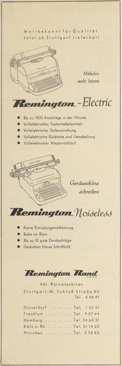Werbeanzeige für Schreibmaschinen Remington monochrom