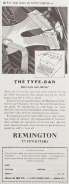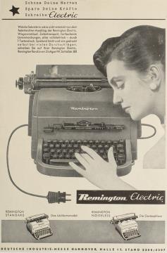 Werbeanzeige für Schreibmaschine Remington mit Formulareinzug monochrom
