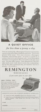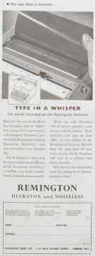 Werbeanzeige für Schreibmaschine Remington Noiseless und Diktiergerät Remington Ultravox monochrom