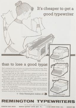 Werbeanzeige für Schreibmaschinen Remington monochrom