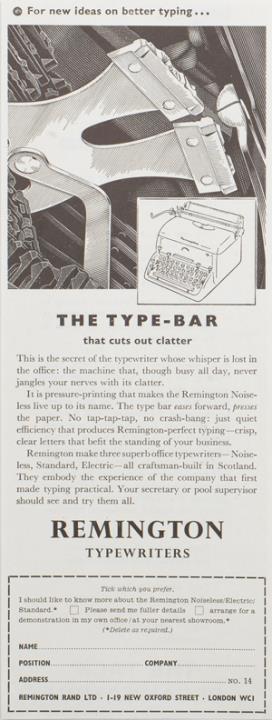 Werbeanzeige für Schreibmaschine Remington monochrom