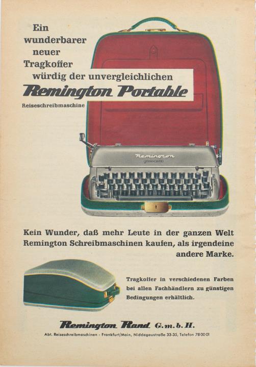 Werbeanzeige für tragbare Schreibmaschine Remington polychrom
