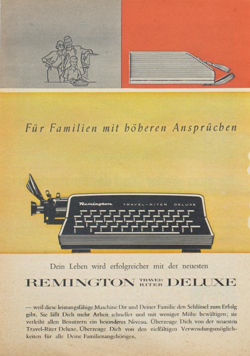 Werbeanzeige für Schreibmaschine Remington polychrom