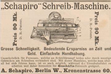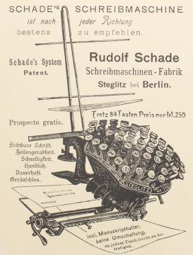 Werbeanzeige für Schnell-Schreibmaschine Rudolf Schade monochrom