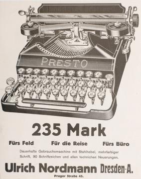 Next to literature on the history of technology, of the typewriter and the office, the Archive holds patent letters, textbooks and instruction manuals as well as historical postcards, letters, photographs and various kinds of advertising (leaflets and brochures, advertising stamps, newspaper ads, posters and signs, promotional gifts).