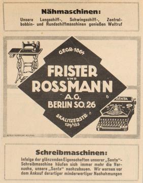 Frister und Rossmann Nähmaschinen und Schreibmaschinen
