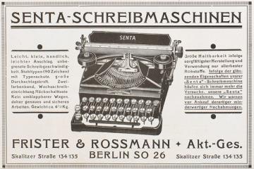 Werbeanzeige für Schreibmaschine Senta monochrom