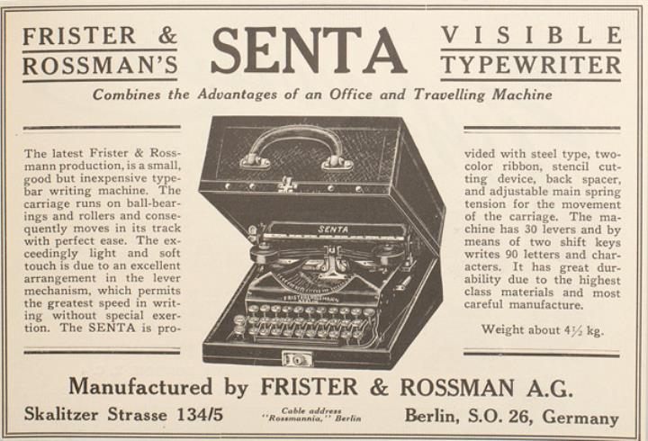 Werbeanzeige für Schreibmaschine Senta monochrom