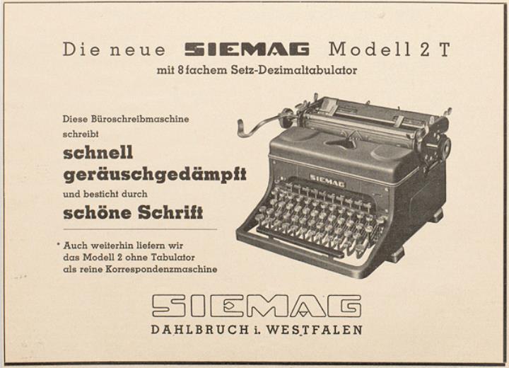 Werbeanzeige für Schreibmaschine Siemag monochrom