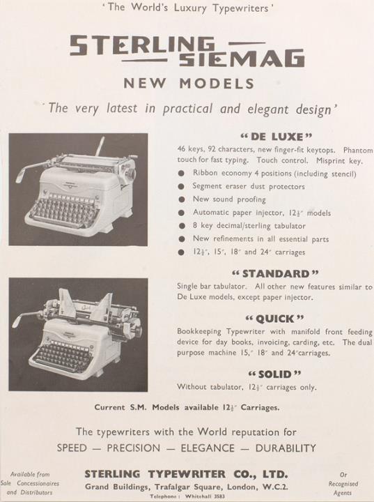 Werbeanzeige für Schreibmaschine Siemag monochrom