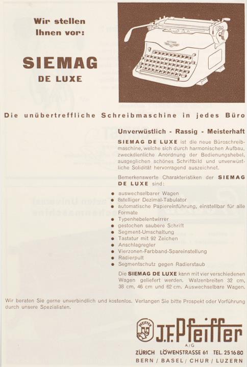 Werbeanzeige für Schreibmaschine Siemag monochrom