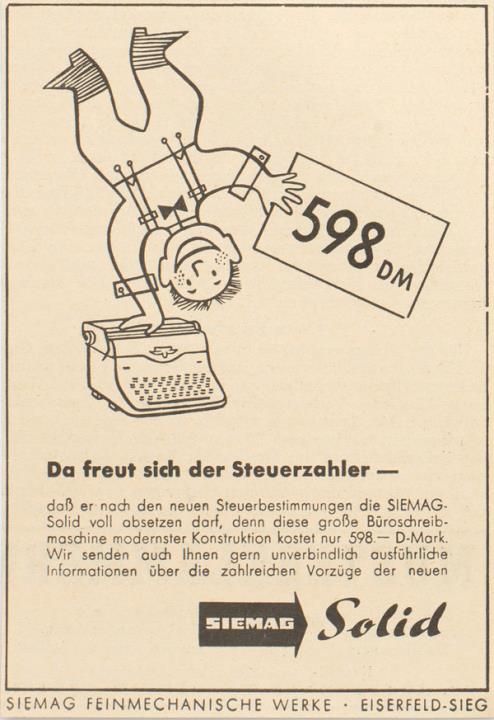 Werbeanzeige für Schreibmaschine Siemag Solid monochrom