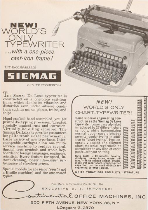 Werbeanzeige für Schreibmaschine Siemag monochrom
