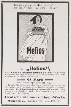 Werbeanzeige für Schreibmaschine Helios monochrom