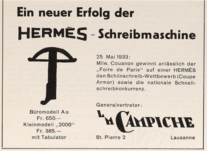 Werbeanzeige für Schreibmaschine Hermes monochrom