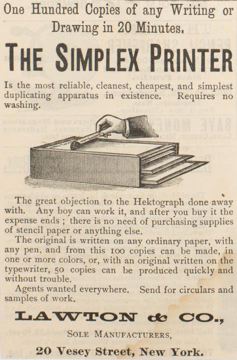 Werbeanzeige für Kopiermaschine Simplex monochrom