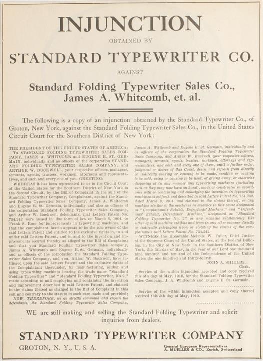 Injunction Standard Typewriter against Standard Folding Typewriter