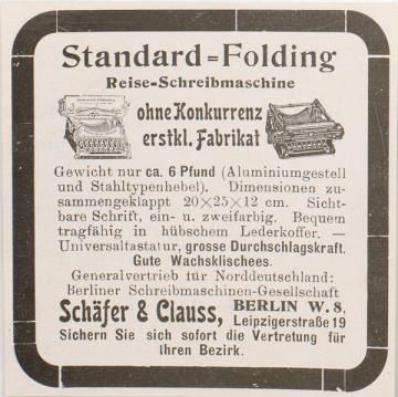 Werbeanzeige für Schreibmaschine Standard Folding monochrom