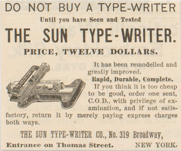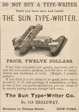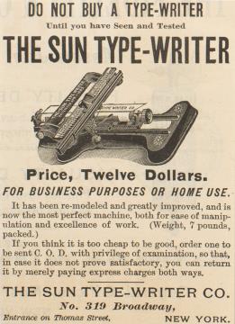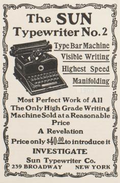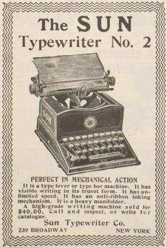 Werbeanzeige für Schreibmaschine Sun Index monochrom