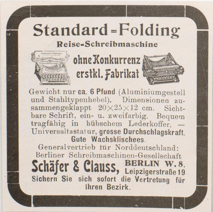 Werbeanzeige für Schreibmaschine Standard Folding Typewriter monochrom