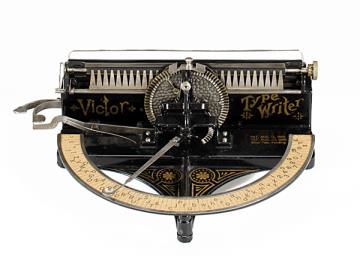 Schreibmaschine Victor Eigenschaften: Zeiger, Typenrad, Vorderanschlag, Groß-/Kleinbuchstaben, Farbkissen Konstrukteur: Arthur Irving Jacobs Besonderheit: erste Schreibmaschine mit Typenrad (daisy wheel)