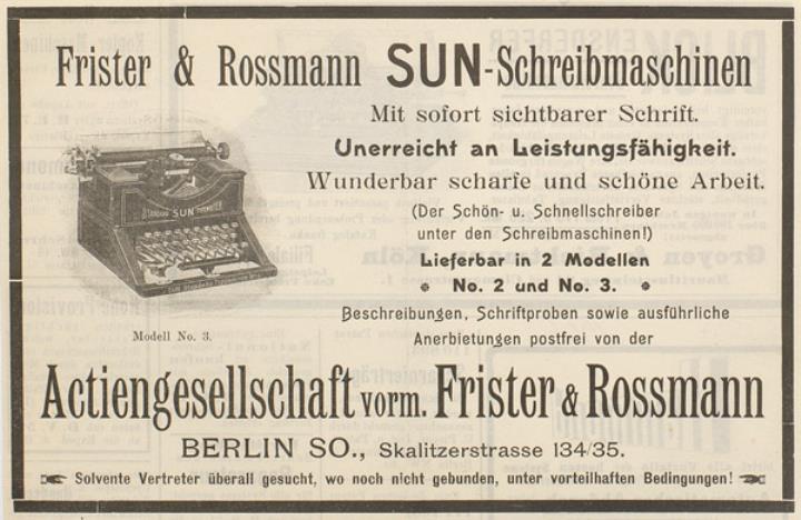 Werbeanzeige für Schreibmaschine Sun 3 monochrom