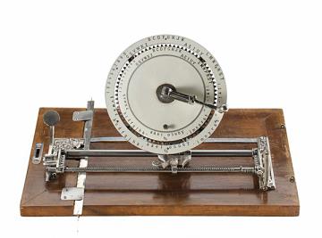 Schreibmaschine Diskret / Discret Geheim- und Weltschreibmaschine Eigenschaften: Zeiger, Typenscheibe stehend, Oberanschlag, Farbröllchen Konstrukteur: Beger & Markworth Besonderheit: Nachfolgemodell der Volksschreibmaschine, das Verschieben der inneren Zeichenskala ermöglichte die Chiffrierung eines Textes