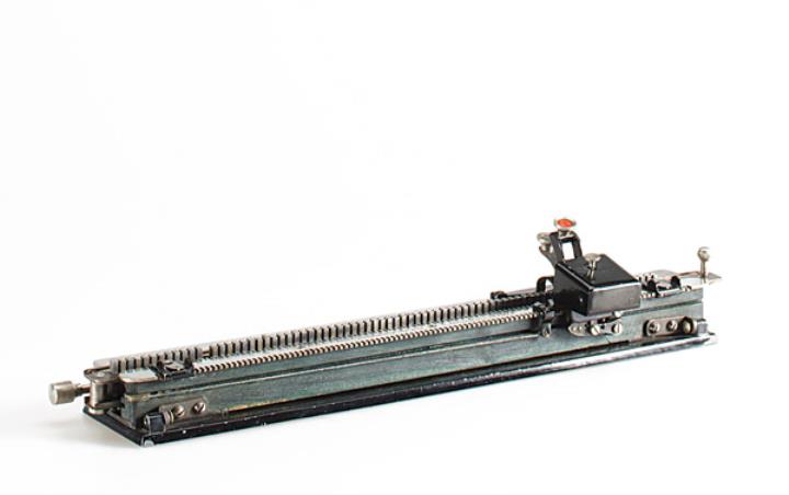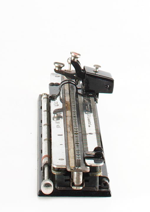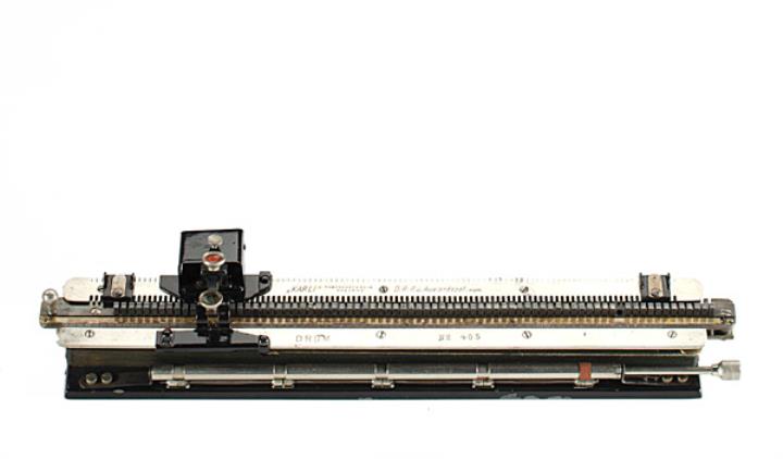 Schreibmaschine Karli Eigenschaften: Zeiger, Typenlineal mit einzelnen Typenträgern (78 Zeichen), Oberanschlag, Farbband Konstrukteur: Karl Dietrich, Seriennummer 405