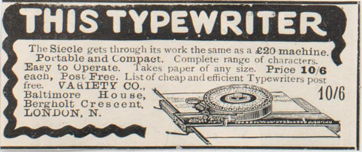Werbeanzeige für Schreibmaschine Simplex (Nouveau Siecle) monochrom