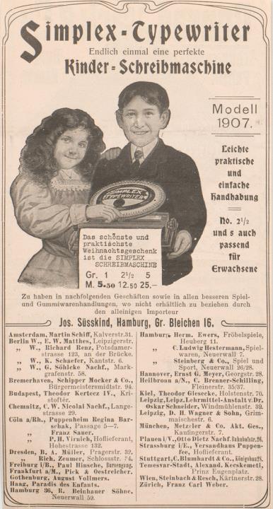 Werbeanzeige für Schreibmaschine Simplex monochrom