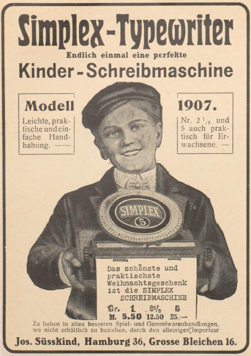 Werbeanzeige für Schreibmaschine Simplex monochrom