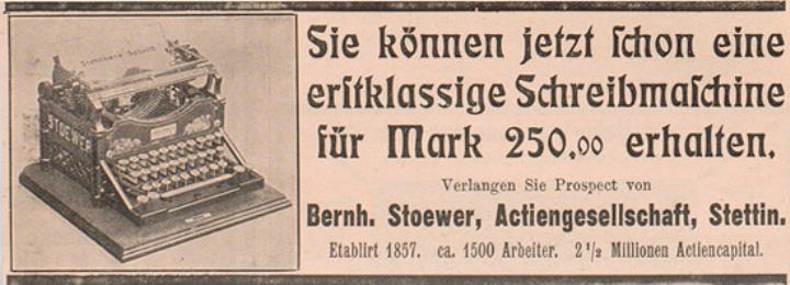 Werbeanzeige für Schreibmaschine Stoewer monochrom