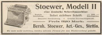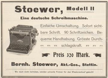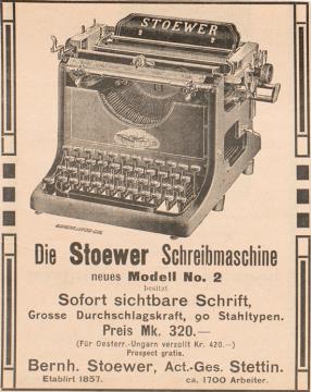 Werbeanzeige für Schreibmaschine Stoewer 2 monochrom
