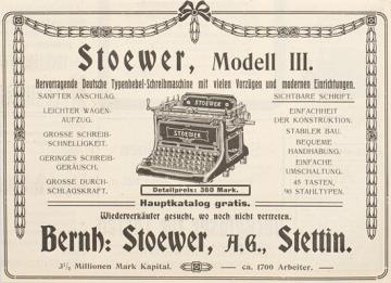 Stoewer, Modell III. Hevorragender Deutsche Typenhebel-Schreibmaschine [...]