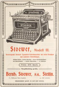 Werbeanzeige für Schreibmaschine Stoewer 3 monochrom