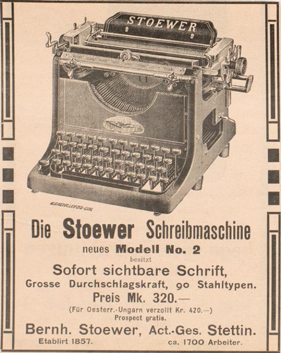 Werbeanzeige für Schreibmaschine Stoewer monochrom